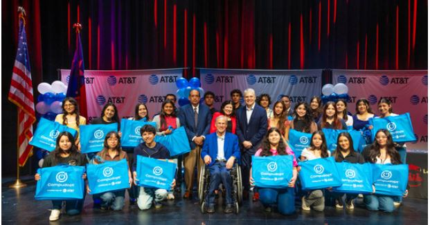 Los Fresnos, Texas.- El gobernador Greg Abbott y AT&T entregaron 150 computadoras portátiles a los estudiantes del Distrito Escolar Independiente Consolidado (CISD) de Los Fresnos.