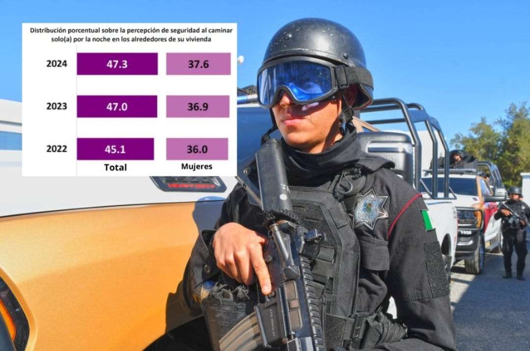 Para la realización de esta encuesta, el INEGI entrevistó a población de 18 años en adelante, quienes percibieron una disminución considerable en la inseguridad en sus municipios, puesto que en el 2022 este aspecto fue evaluado con un 60.8% y bajó hasta el 54.9% en 2024.