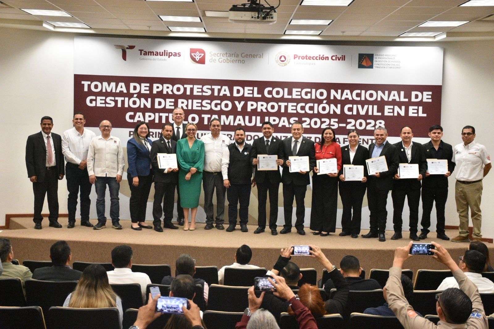 Ciudad Victoria,Tamaulipas.- Con el propósito de fortalecer la cultura de la prevención y consolidar la profesionalización en materia de protección civil, se llevó a cabo la toma de protesta del Capítulo Tamaulipas del Colegio Mexicano de Profesionistas en Gestión Integral de Riesgos y Protección Civil, organismo que contribuirá al desarrollo técnico y estratégico en la Gestión Integral de Riesgos en la entidad.