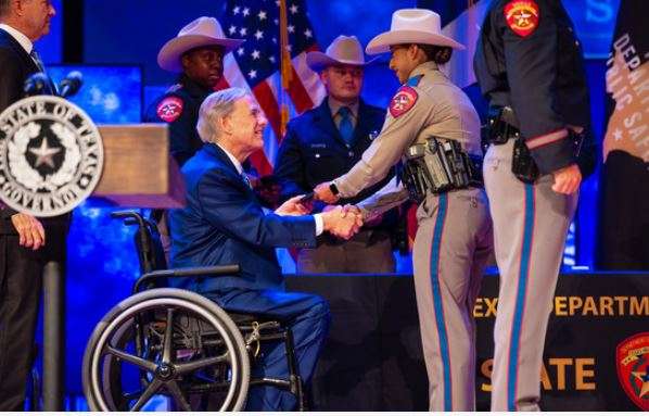 Austin, Texas.- El gobernador Greg Abbott celebró hoy el 90.º aniversario del Departamento de Seguridad Pública de Texas (DPS) y elogió la valentía de la nueva Clase A-2025 del DPS durante una ceremonia de graduación en la Iglesia Bautista Great Hills.
