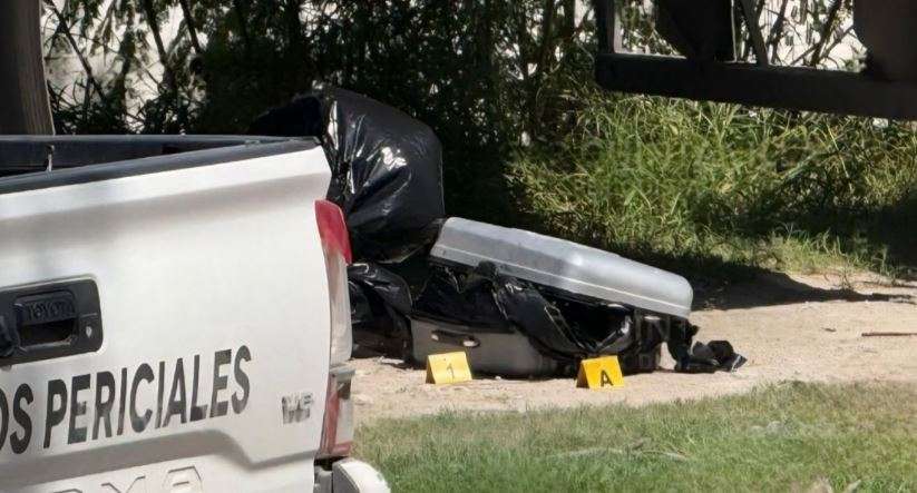 Reynosa, Tam.- Una maleta con restos humanos fue hallada esta mañana a solo unos metros de una primaria, en plena vía pública en Reynosa.