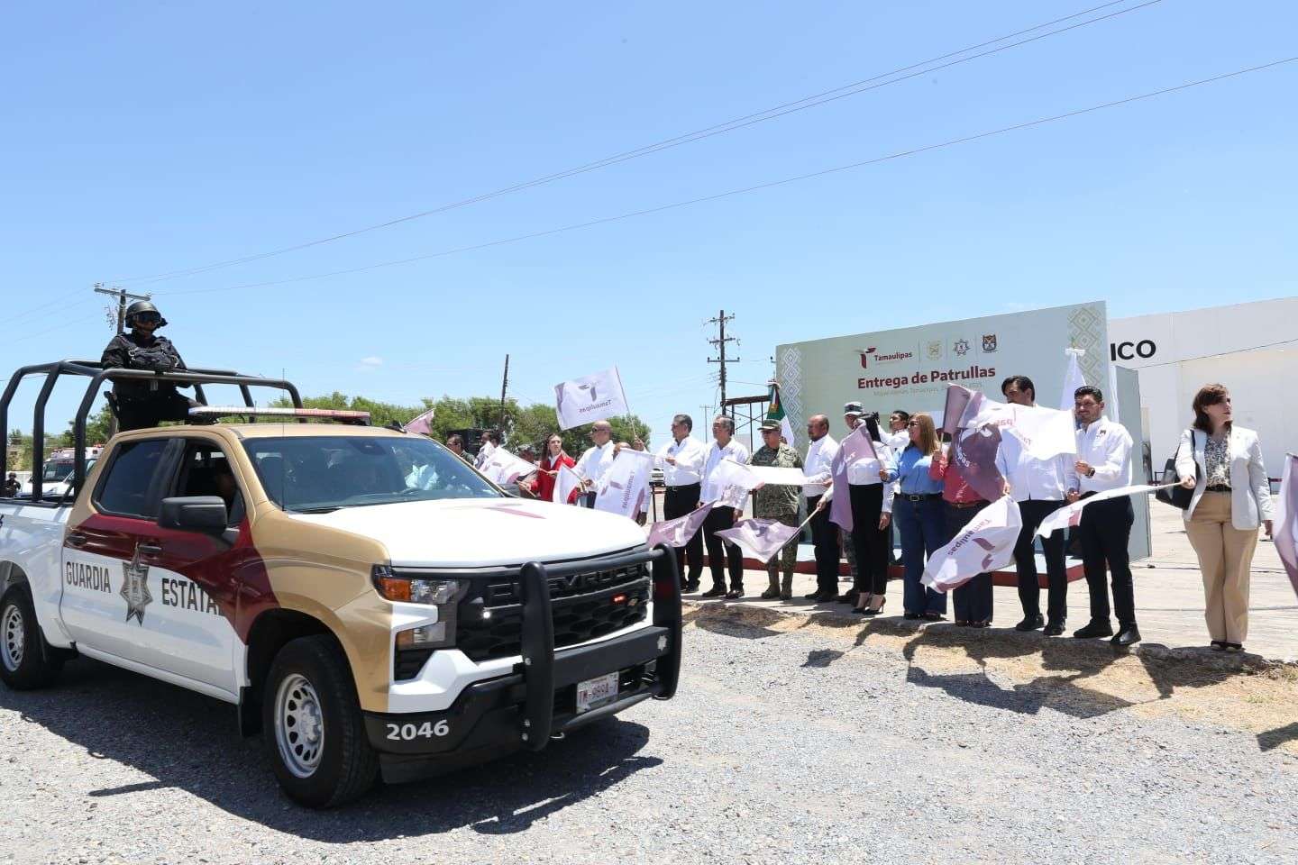 Durante el evento formal de la entrega de patrullas, Villarreal Anaya dijo que son acciones para “seguir fortaleciendo este avance y este rumbo que ha decidido tomar la sociedad en Tamaulipas, de la justicia, de la paz, de la convivencia social”.