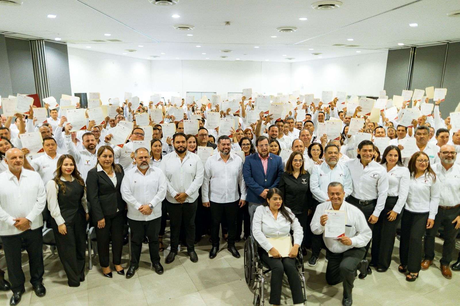 Agradeció también a la presidenta Claudia Sheinbaum Pardo, pues, gracias a que los gobiernos federal y estatal trabajan de manera coordinada bajo una misma visión, se logró la basificación para personal del área operativa y de las coordinaciones regionales del CETE.