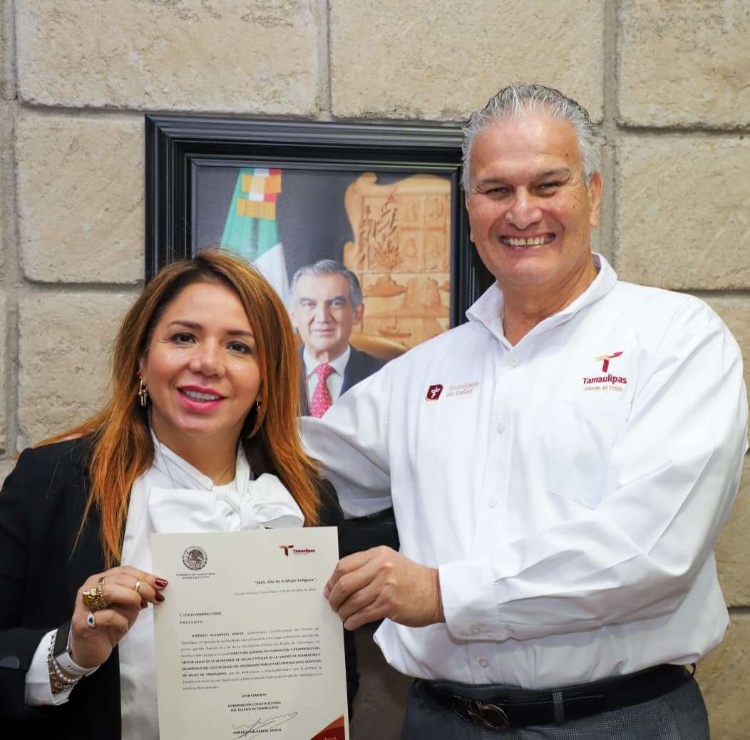 Victoria, Tamaulipas.- Con la entrada en vigor y después de las reformas a la nueva estructura orgánica, por instrucción del gobernador Américo Villarreal Anaya, el titular de la Secretaría de Salud de Tamaulipas, Vicente Joel Hernández Navarro, hizo entrega de los nombramientos a los nuevos titulares de la dependencia estatal.