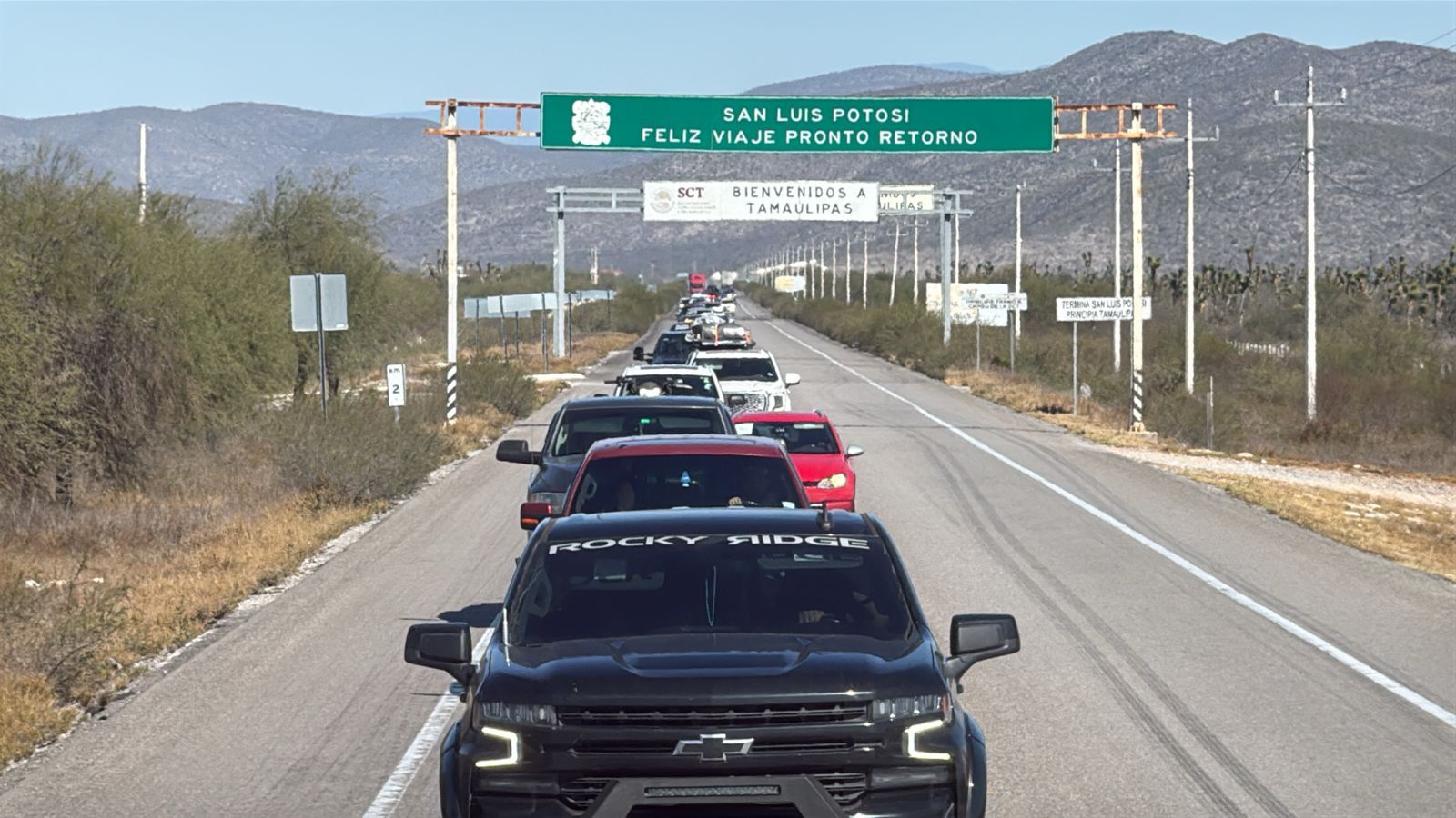 En ese punto, la caravana fue recibida por autoridades de la Fuerza Civil del estado de San Luis Potosí y la Guardia Nacional, quienes continuaron con el acompañamiento en la entidad vecina.