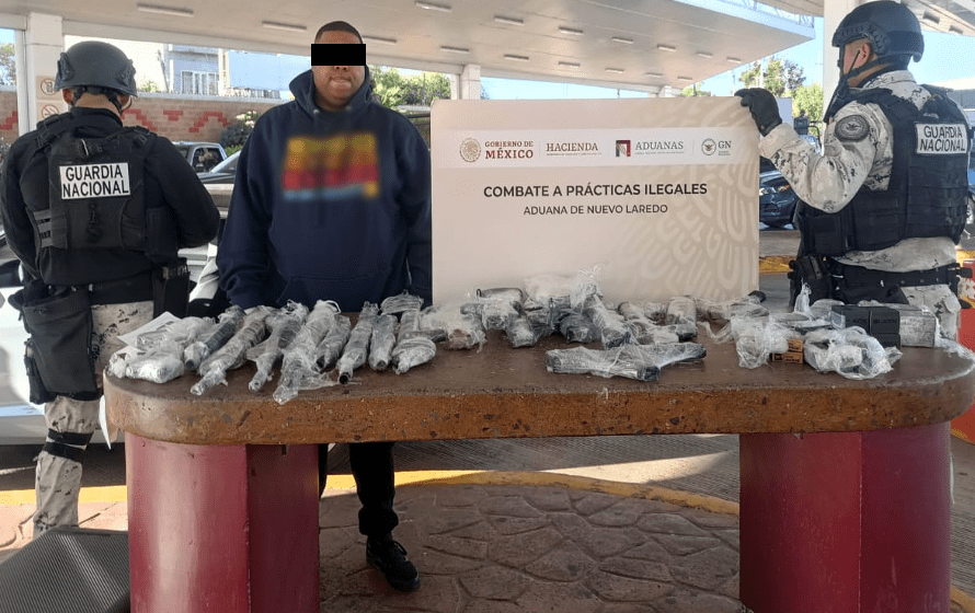 Nuevo Laredo, Tamaulipas. – Un ciudadano americano con residencia en Dallas fue detenido por autoridades mexicanas cuando cruzaba un puente internacional con armas.