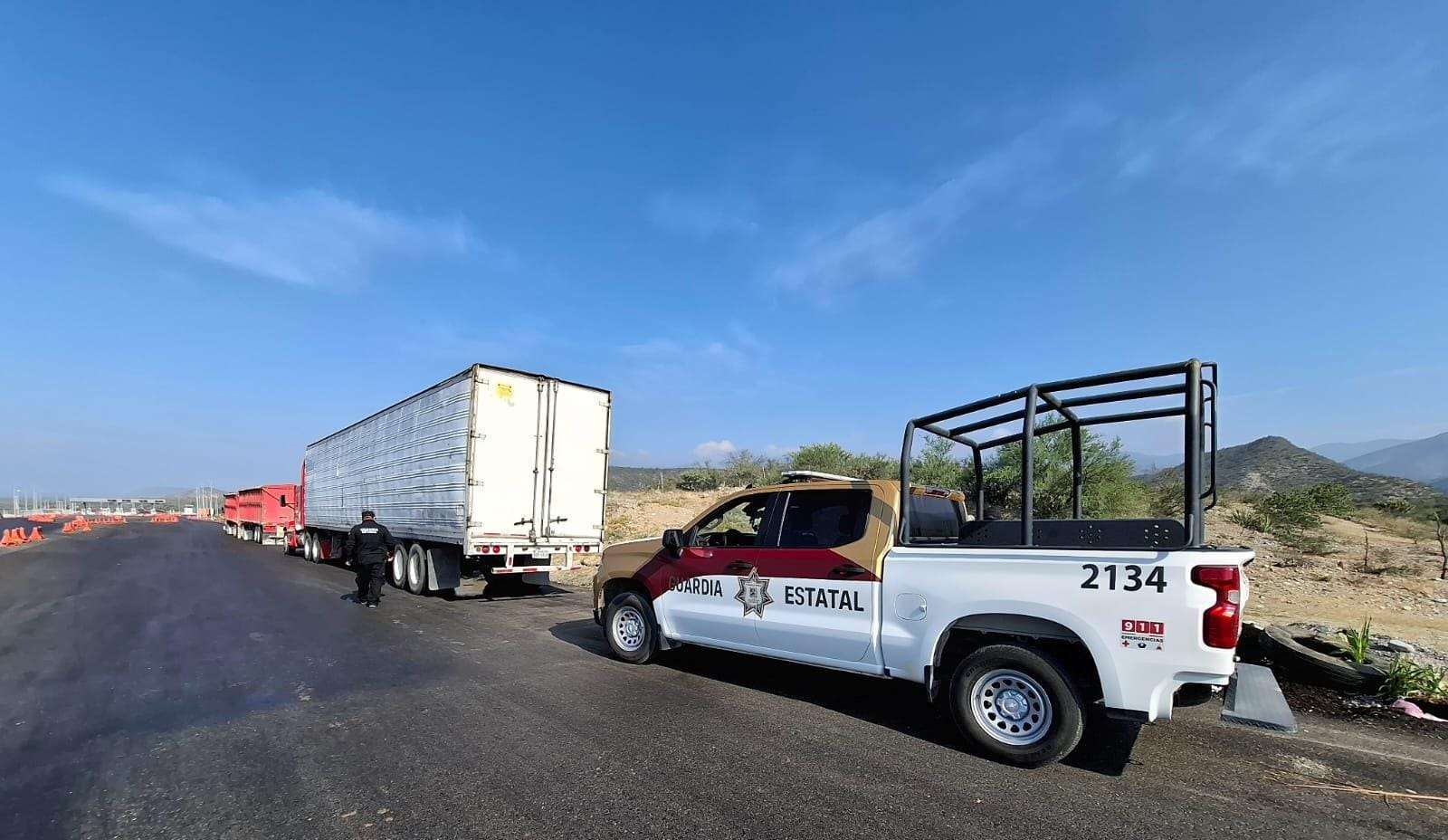 Jaumave, Tamaulipas.- Al realizar recorridos de seguridad y vigilancia sobre la Carretera Estatal 126 Rumbo Nuevo, personal de la Guardia Estatal de Apoyo Carretero comisionado a la Estación Segura Jaumave brindó asistencia al operador de un tractocamión que presentó una falla mecánica en el kilómetro 36.