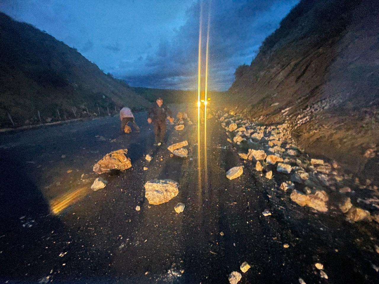 Ciudad Victoria, Tamaulipas.- Para liberar la circulación sobre la Carretera Estatal 126 Rumbo Nuevo que se encontraba obstruida por deslaves en la sierra, personal de la Guardia Estatal de Apoyo Carretero comisionado a la Estación Segura Jaumave realizó el retiro de las piedras que cayeron sobre la cinta asfáltica.