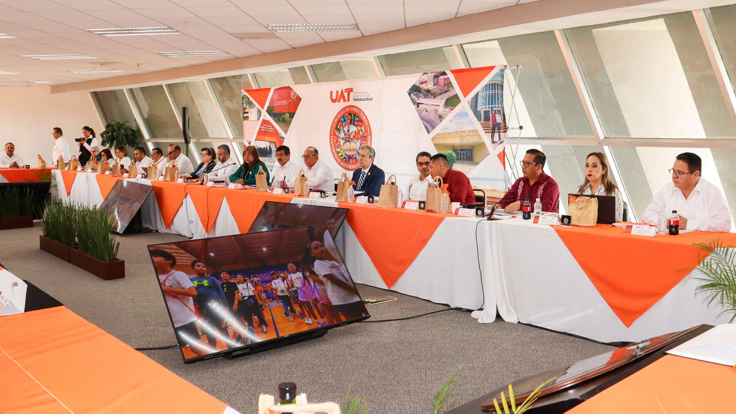 Tampico, Tam.- El rector de la Universidad Autónoma de Tamaulipas (UAT), Dámaso Anaya Alvarado, encabezó la 14.ª Reunión del Colegio de Directores, llevada a cabo en el Centro Universitario Sur (CUS), donde se reunió con titulares de las 27 dependencias académicas y funcionarios del gabinete de la Rectoría para revisar los avances institucionales y definir nuevas estrategias orientadas al fortalecimiento académico y administrativo de la casa de estudios.