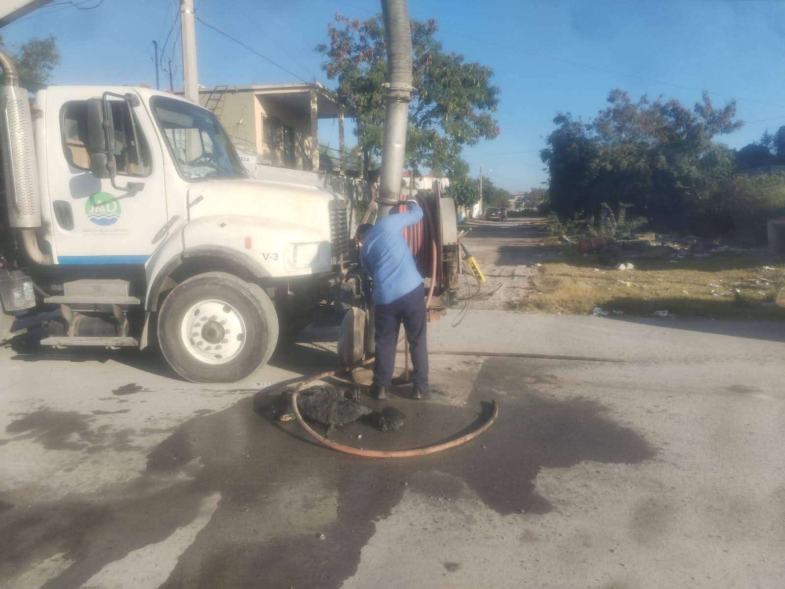 H. Matamoros, Tamaulipas.- Por instrucciones del alcalde Beto Granados, empleados encargados del camión vactor supervisaron el trabajo que se realiza, el cual continúa atendiendo diversos sectores de la ciudad para mejorar el flujo del sistema de drenaje y prevenir afectaciones a los vecinos.