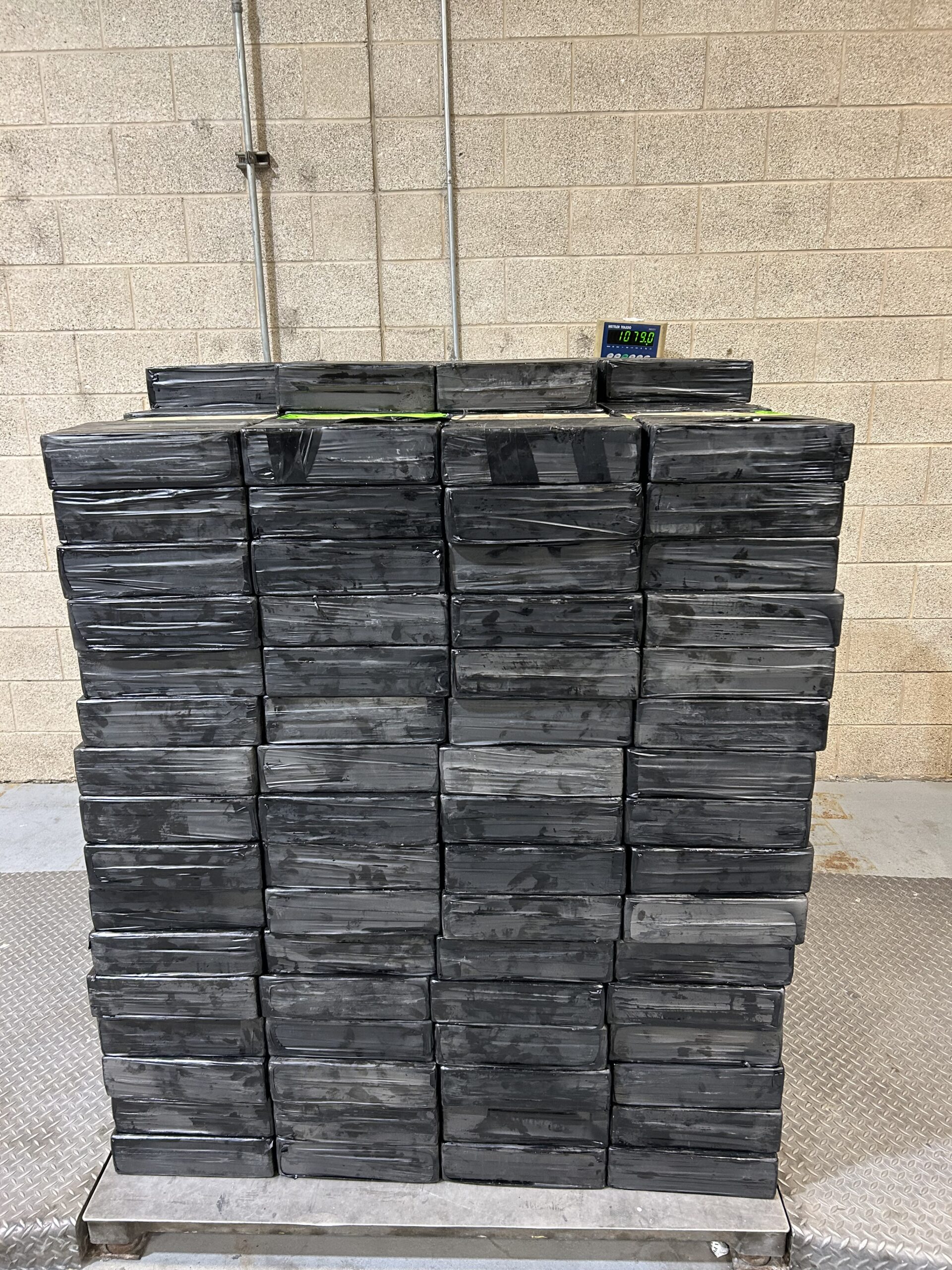 Después de inspeccionar físicamente el envío, los oficiales extrajeron 398 paquetes de supuesta metanfetamina que pesaban casi 2,379 libras (1079 kg) escondidos dentro del remolque.