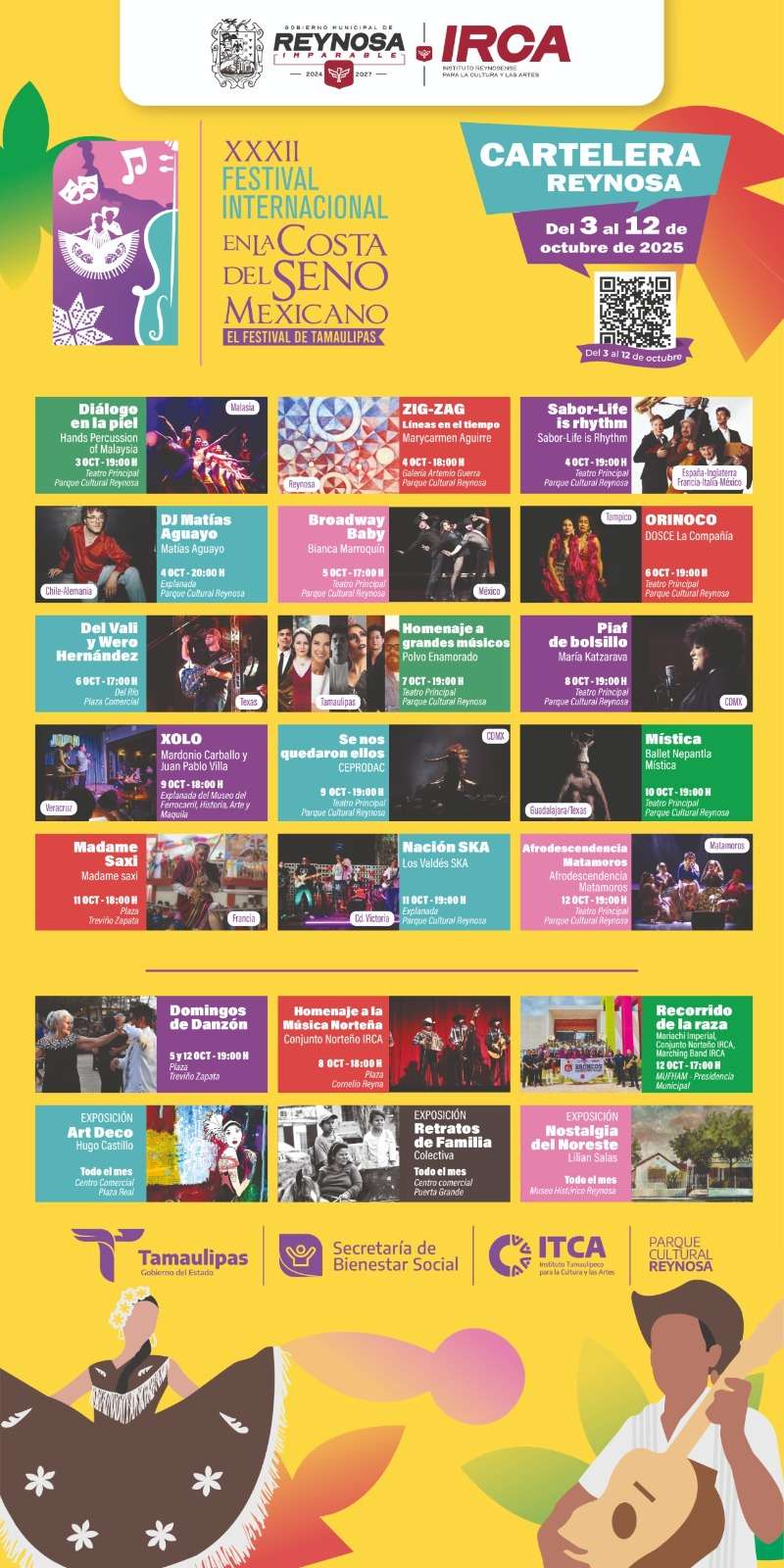 Reynosa, Tam,- El Presidente Municipal, Carlos Peña Ortiz, invita a la comunidad reynosense a disfrutar del XXXII Festival Internacional en la Costa del Seno Mexicano, del 3 al 12 de octubre con más de 20 eventos de alta calidad artística, gratis para todos.