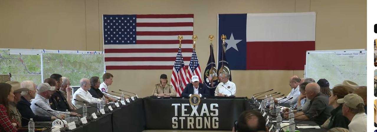 “La primera dama y yo estamos aquí en Texas para expresar el amor, el apoyo y la angustia de toda nuestra nación tras esta terrible y mortal inundación”, dijo Trump al presidir una mesa redonda para la evaluación de los daños en Kerville.