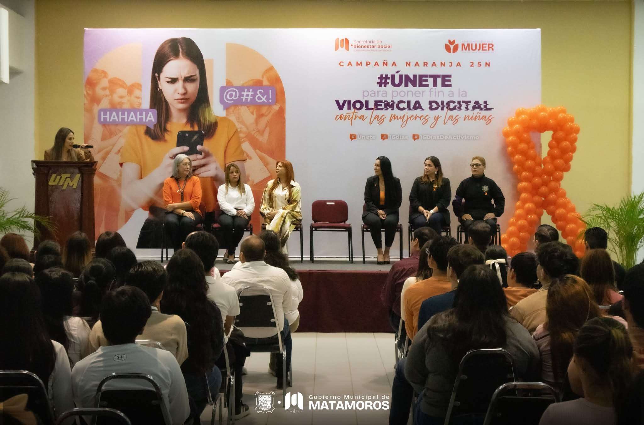Matamoros, Tam.- En el marco de los 16 Días de Activismo contra la Violencia hacia las Mujeres, se llevó a cabo en la Universidad Tecnológica de Matamoros el evento “ÚNETE para poner fin a la violencia digital contra las mujeres y las niñas”, dirigido a estudiantes y personal docente, con el propósito de reforzar la concientización y la prevención de agresiones en entornos virtuales.