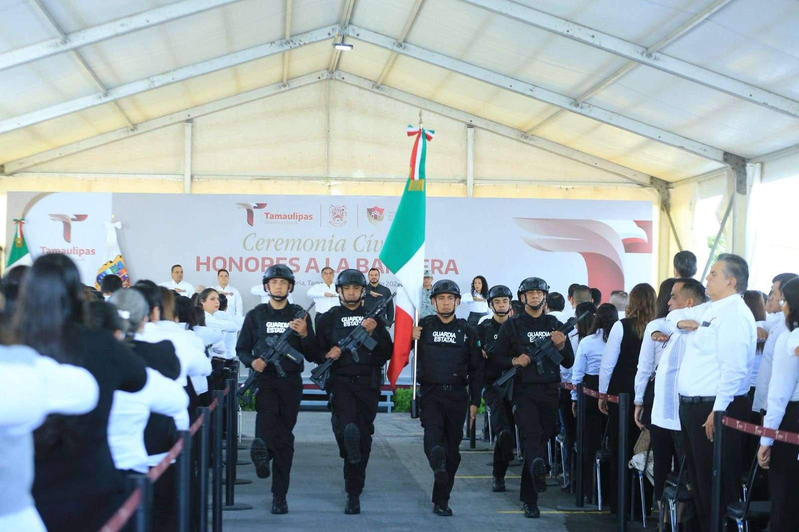 Participaron en los honores también: Héctor Joel Villegas González, secretario general de Gobierno; Humberto Prieto Herrera, presidente de la Junta de Gobierno del Congreso local; Cynthia Jaime Castillo, presidenta de la Mesa Directiva del Congreso local; Hernán de la Garza Tamez, presidente del Supremo Tribunal de Justicia y Francisco Alvarado Terán, coordinador estatal de la Guardia Nacional, además de funcionarios del gabinete estatal, personal del C3 e integrantes de la Mesa de Coordinación para la Construcción de la Paz.