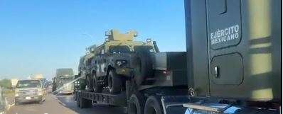 Equipo militar mexicano -como una flotilla de Humvees- fue visto en la carretera 69 en Harlingen, escoltado por policías estatales y federales.