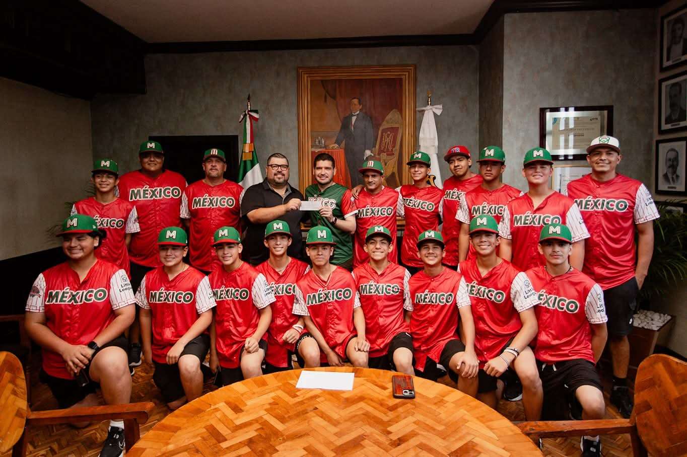 H. Matamoros, Tamaulipas .- El presidente municipal, Beto Granados, recibió al equipo de la Liga Pequeña de Béisbol Villa del Refugio A.C., quienes representarán a Matamoros y a México en una competencia internacional que se llevará a cabo en Guatemala. Durante el encuentro, el alcalde expresó su reconocimiento a los jóvenes deportistas por su dedicación, disciplina y pasión por el béisbol, valores que, dijo, son ejemplo para toda la niñez y juventud matamorense.