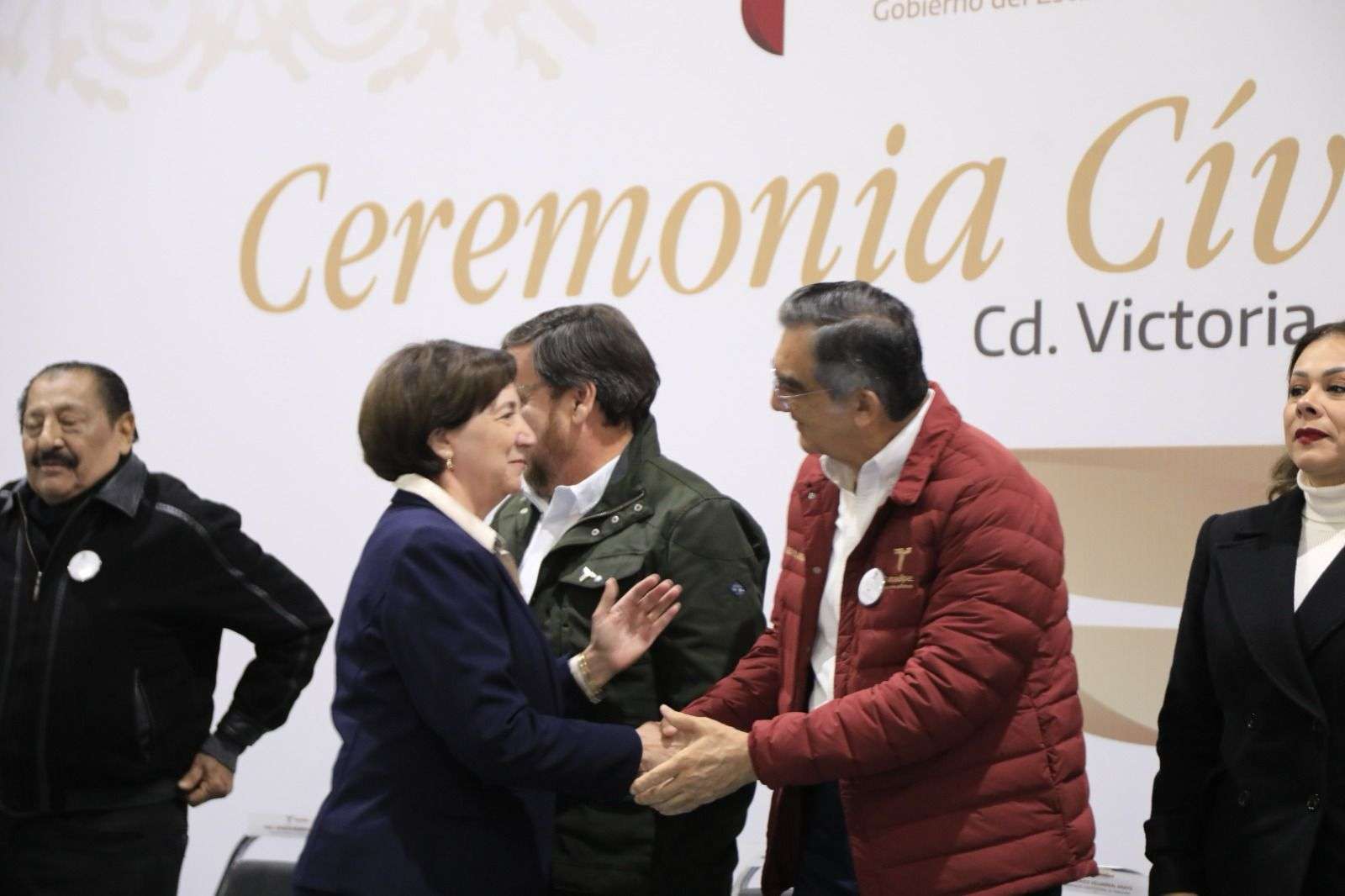 Ciudad Victoria, Tamaulipas.– El gobernador de Tamaulipas, Américo Villarreal Anaya resaltó el papel trascendental de la educación y del magisterio en la formación de una sociedad más humana, justa y con visión de futuro, al presidir la Ceremonia de Honores a la Bandera en la Benemérita Escuela Normal Federalizada de Tamaulipas.