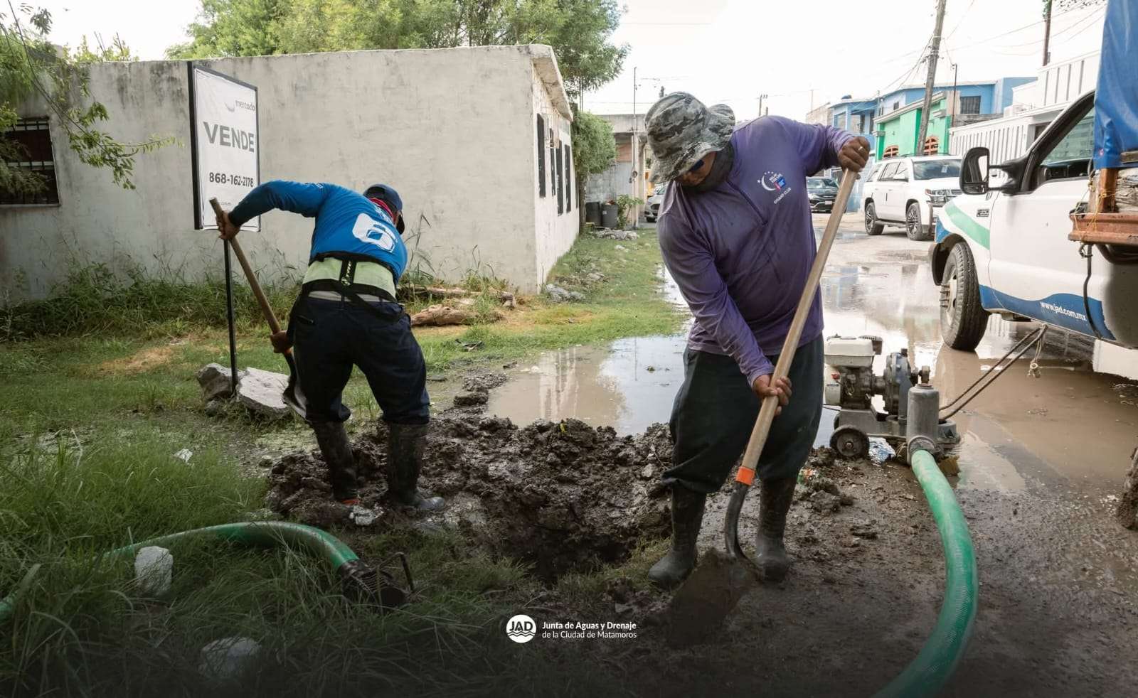 Matamoros, Tam.- El Gobierno de Beto Granados informó que esta mañana personal de la Junta de Aguas y Drenaje de Matamoros atendió de manera inmediata una fuga de agua potable en la calle Doce de la colonia Moderna.