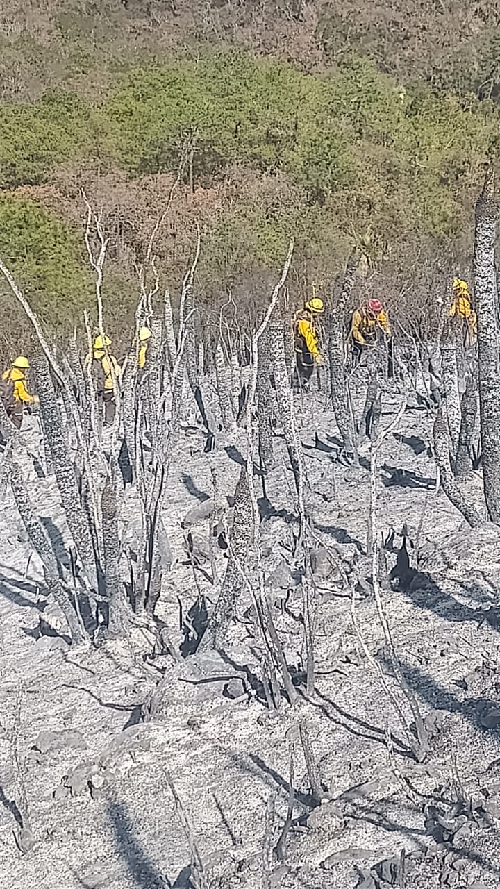 El coordinador estatal de Protección Civil, Luis Gerardo González de la Fuente, informó que en estas acciones participan 69 elementos de distintas corporaciones y brigadas, quienes realizan trabajos de combate directo, vigilancia y liquidación para evitar la propagación del fuego y proteger la zona forestal.