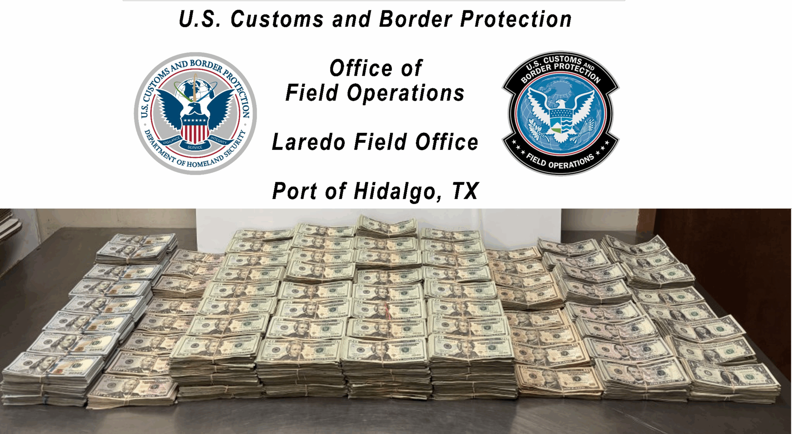 Mission, Texas.- Un ciudadano estadounidense de 44 años que estaba por cruzar hacia Reynosa fue descubierto con 815 mil 475 dólares en efectivo sin declarar.